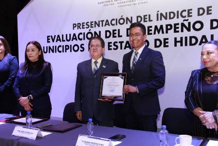 La Auditoría Superior del Estado de Hidalgo (ASEH), entregó reconocimientos a los ayuntamientos mejor calificados en el Índice de Evaluación del Desempeño de los Municipios del Estado de Hidalgo 2025, entre los que destaca Mineral de la Reforma, al obtener una calificación de 90.5.